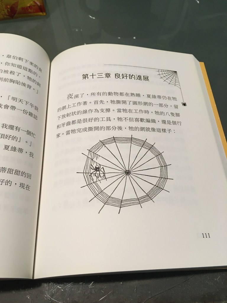 這次我一樣閱讀了「夏綠蒂的網」連續好幾周前的閱讀,因為之前有看過電影,所以大概知道劇情怎麼樣,而我自己在這個故事當中最印象深刻的就是,我覺得就算他是一隻豬,但他也沒有放棄他自己的生命,別人也會創造出讓人類覺得很特別的奇蹟,而且蜘蛛真的非常的厲害我也覺得蜘蛛真的是非常聰明比人類還要厲害,也非常有智慧~