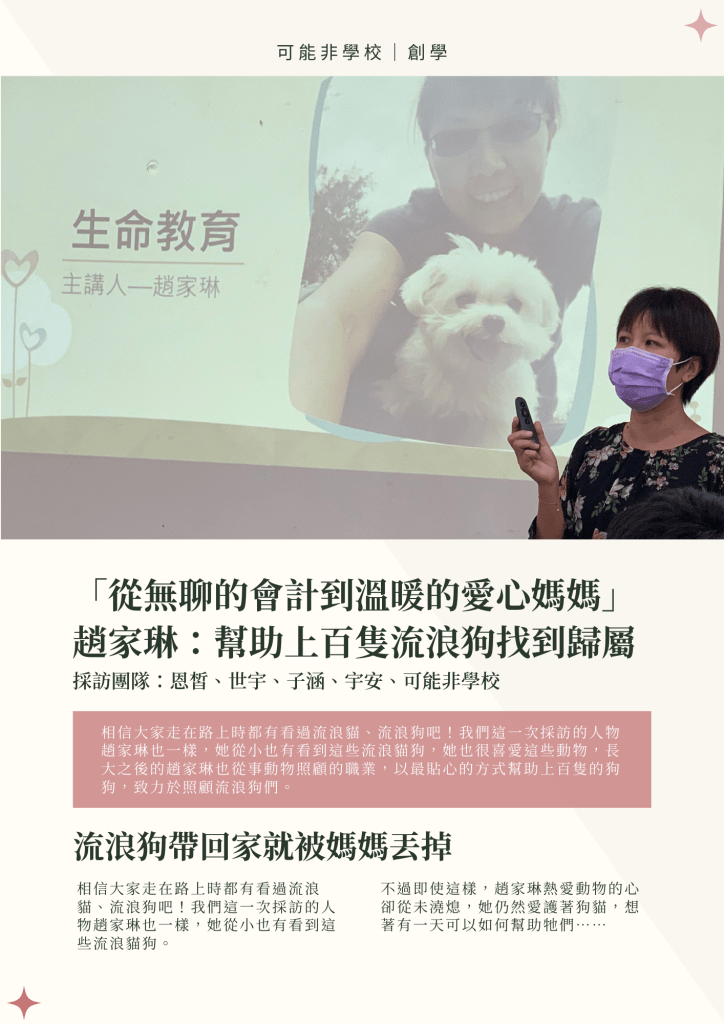 今天我們一整天就有來做小組的專案而下面這些就是我們星期一有做採訪,所以把它做成文章又做成簡報,而且這樣子就是像網路上這種文章或雜誌的方式,把它整理成三張的人物專訪,我自己覺得這次做的蠻成功,文字內容還有排版都是我們小組一起做出來的,我覺得不想以前上課完之後只單純寫日記而是用小組的方式把它整理出來,也把它做成一個專案,這樣會讓這堂課更有印象~