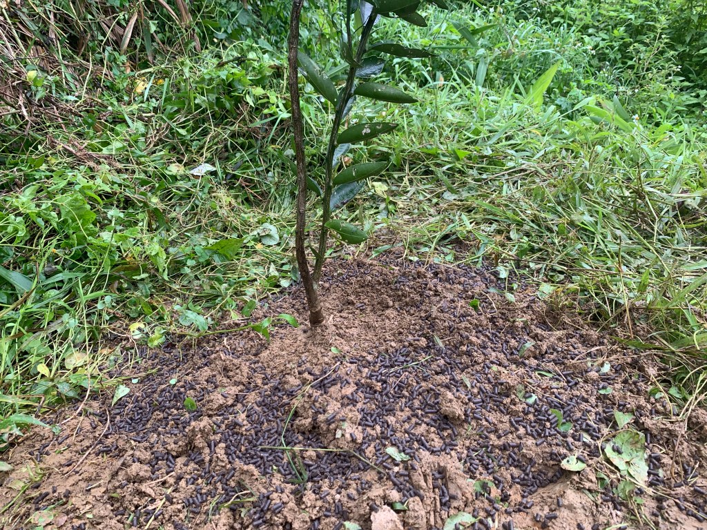 今天我們自然課就是來照顧柳丁,一開始進去的時候發現他的雜草未免也太多了,所以開始大清潔,首先就先把旁邊的草通通把一把丟一丟,雜草才不會去搶柳丁的養分,再來撒上顆粒肥,就可以拉!